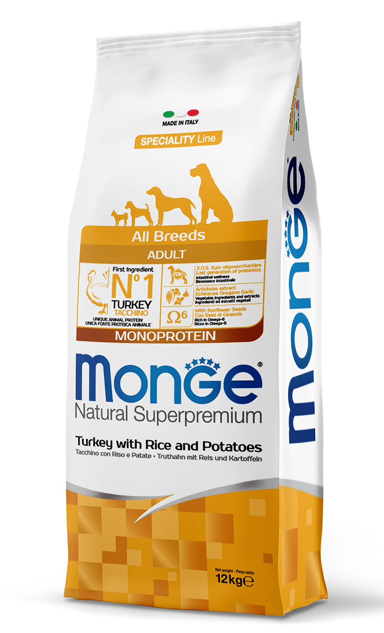 “Склад: індичка (сушена 30%, свіжа 10%), коричневий рис (15%), кукурудза, тваринний жир (курячий жир, очищений на 99,5%), картопля (4%), кукурудзяний глютен, суха бурякова пульпа, пивні дріжджі, гідролізовані тваринні білки (печінка), риб’ячий жир (лососевий жир 1%), насіння соняшнику (1%), мінерали, дріжджі (маннаноолигосахариды MOS 1%), ксилоолигосахариды (XOS 0,3%), юка шидигера (0,3%), борошно з водоростей (спіруліна – Arthrospira platensis 0,3%), продукти переробки рослин (корінь ехінацеї пурпурної 0,2%, Origanum Vulgare 0,1%), сушений часник (0,2%), глюкозамин (0,057%), хондроитин сульфат (0,04%).