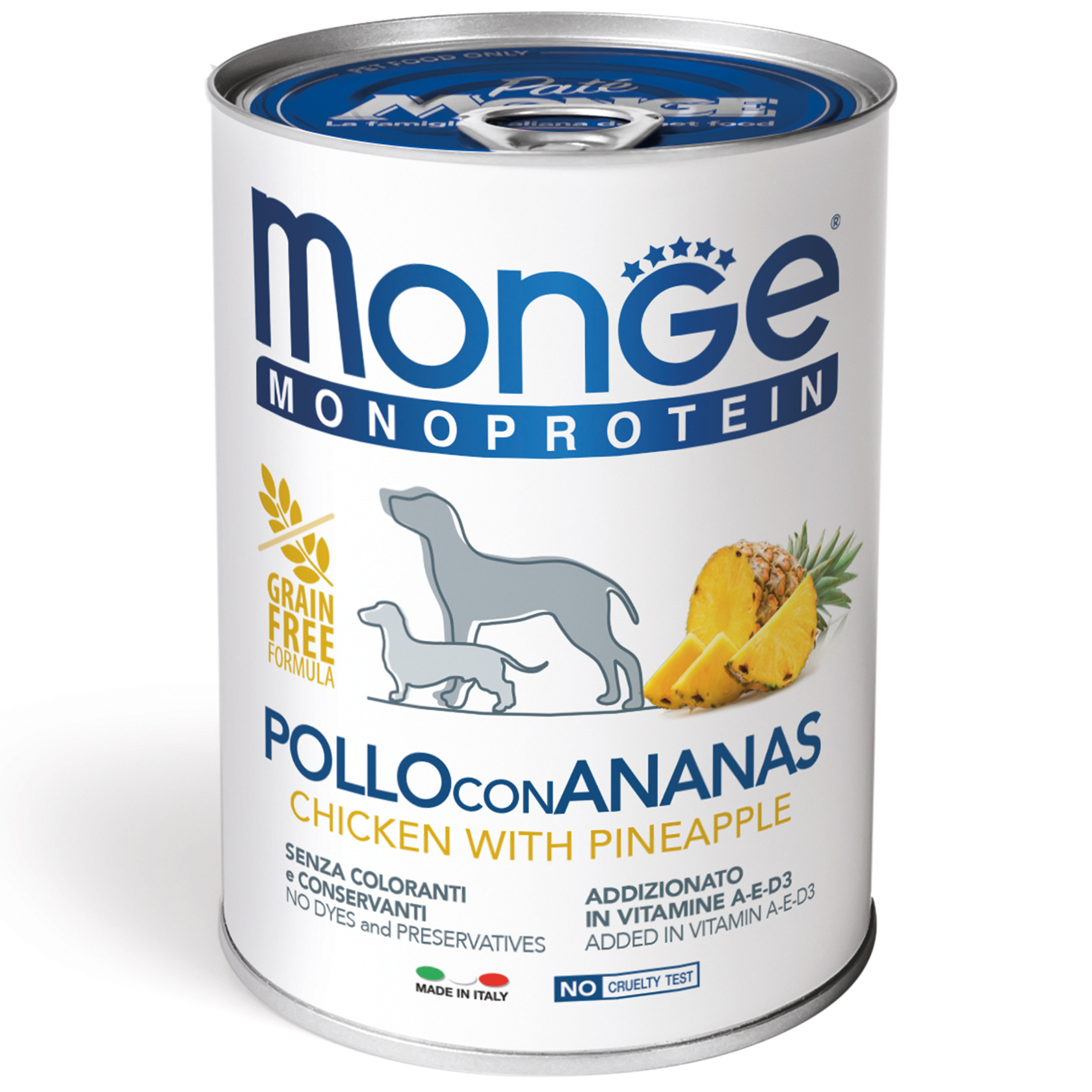 Консерви лінійки Monoprotein Fruits можуть служити основою виключає дієти при харчової алергії у собак. До складу даного корму входить тільки білок курки, що дозволяє легко виключити з раціону інгредієнти, що викликають алергію. шматочки і екстракт ананаса покращують смак паштетів і збагачують корми клітковиною.