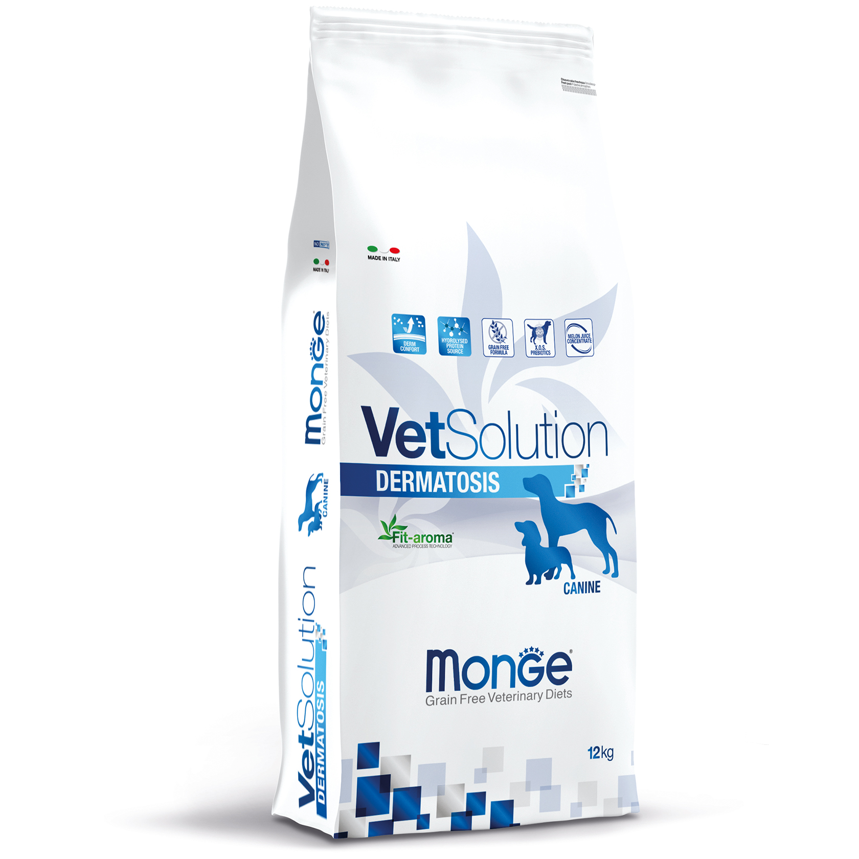 “Інгредієнти: Гідролізований білок лосося (23%), сушений горох, тапіока, картопля, тваринний жир (качиний жир)*, клітковина гороху, тваринний жир (курячий жир)*, риб’ячий жир (лососевий жир)*, порошок ріжкового дерева, мінерали, пивні дріжджі, ксилоолігосахариди (XOS 0,4%), алое вера (0,06%), продукти та побічні продукти переробки свіжих фруктів та овочів (концентрат соку дині – Cucumis melo cantalupensis – джерело супероксиддисмутази 0,005%). *очищений на 99,6%, консервований натуральними антиоксидантами.