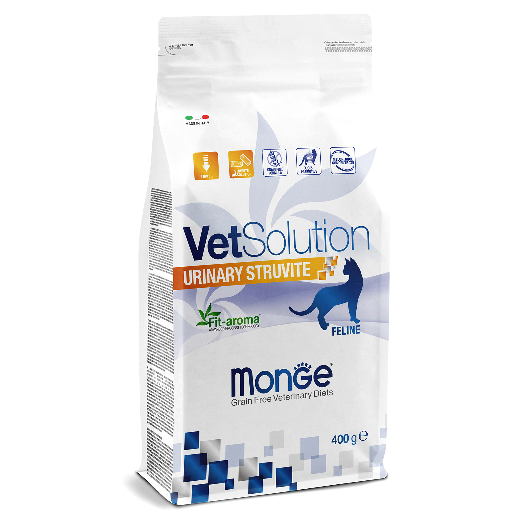 Поживна цінність/кг: Сирий протеїн: 33%, сира клітковина: 3,9%, сирий жир: 17%, сира зола: 7%, кальцій: 1,3%, фосфор: 0,8%, натрій: 0,8%, магній: 0,06%, калій: 1,2%, хлориди: 1,9%, сірка: 0,16%, загальний таурин: 0,4%. Речовини, що підкислюють сечу: хлорид амонію: 0,2%, хлорид калію: 0,4%.